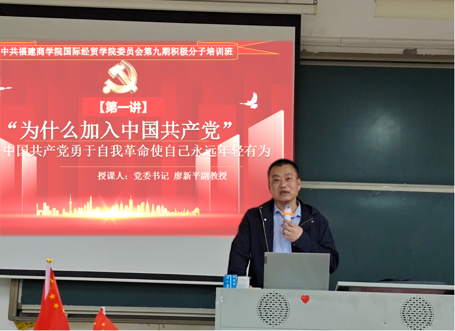 4月18日,yl7703永利集团第九期入党积极分子培训班举办第一堂讲座。学院党委书记廖新平为全体学员讲授“为什么加入中国共产党——中国共产党勇于自我革命使自己永远年轻有为”专题党课。