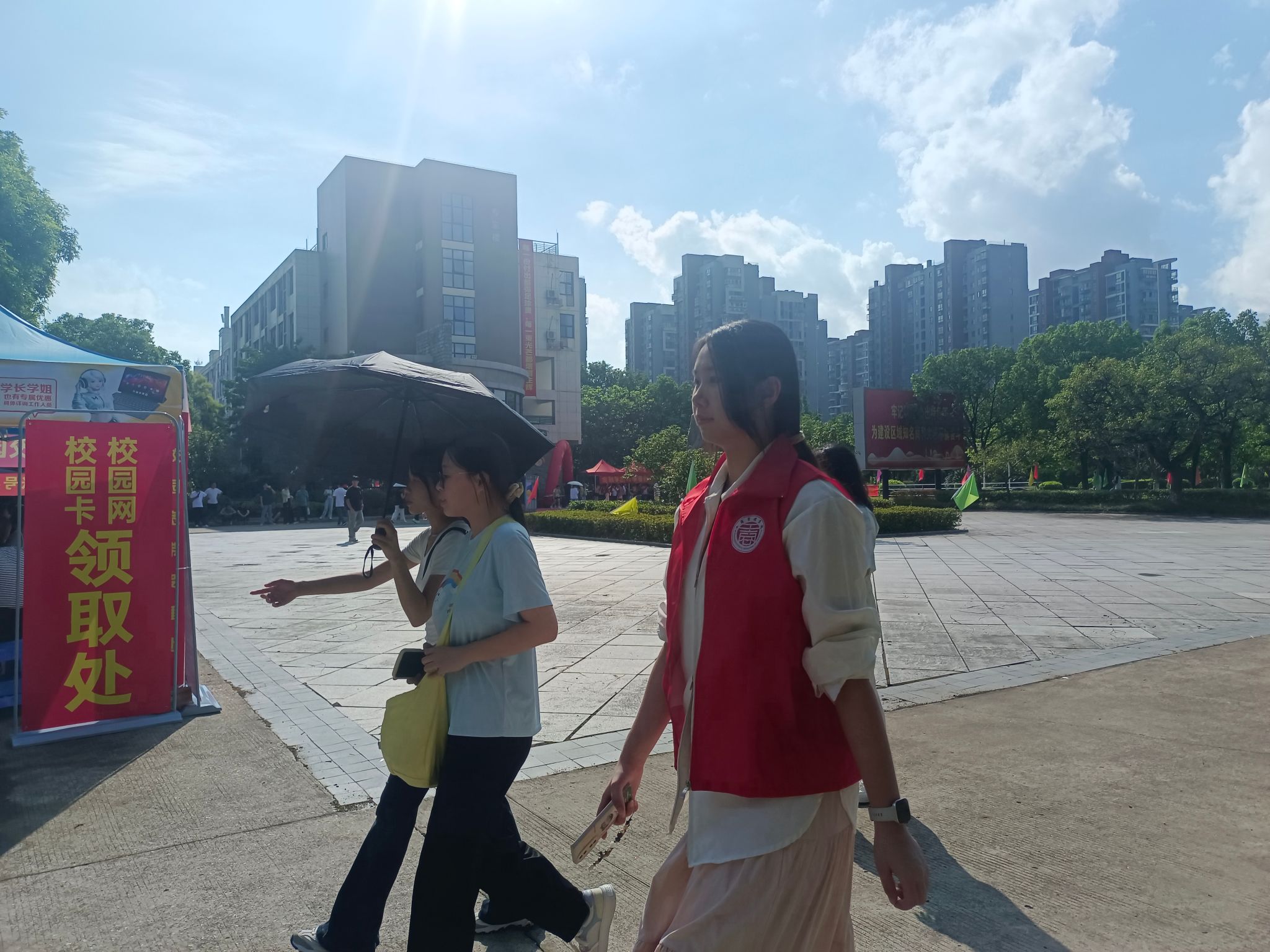 当日清晨八点,志愿服务准时启动。参与人员提前抵达岗位,以饱满的热情和严谨的态度投入工作。在校门口,他们化身“引路向导”,主动接过新生手中的行李,耐心指引路线,协助新生快速找到学院迎新咨询点;在各宿舍楼下,他们变身“搬运能手”,不顾上下楼梯的奔波劳累,一次次将沉重的行李送到新生宿舍门口,用忙碌的身影勾勒出校园里最温暖的风景线。