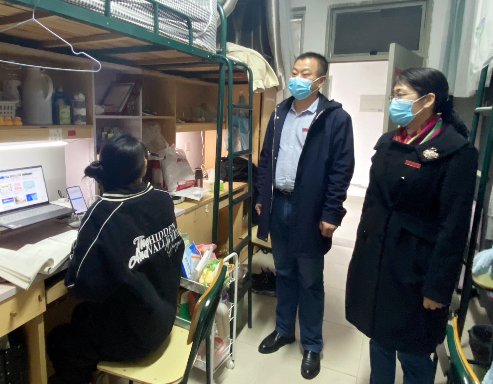 3月22日,学院党委书记廖新平、院长张美涛带领思政辅导员,深入学生宿舍,走访了解学生线上学习情况。廖新平书记亲切叮嘱学生要养成良好的学习和作息习惯,自觉自律、勤勉务实、互帮互助,在非常时期共克难关、共度时艰。张美涛院长勉励学生要珍惜时间,适应线上学习方法和要求,敏而好学、不懂就问,遇到困难要及时向辅导员和任课老师反馈与请教,确保学业不受疫情形势的影响。