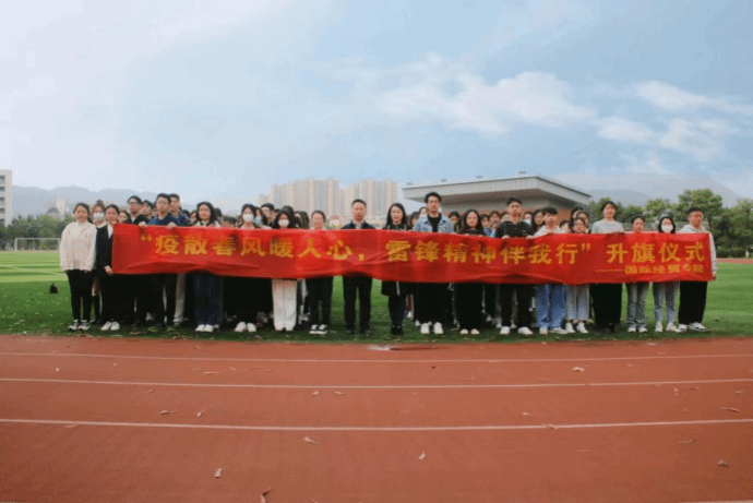三月莺时春已至,春风十里胜可期。为深入学习贯彻党的二十大精神,全面落实习近平总书记关于志愿服务系列重要指示精神,进一步学习和弘扬雷锋精神,3月13日,yl7703永利集团在马尾校区田径场举行以“春风暖人心,雷锋精神伴我行”为主题的升旗仪式,学院团学办副主任王祖鑫、辅导员林明、张瑜以及学生代表近110人参与本次活动。
