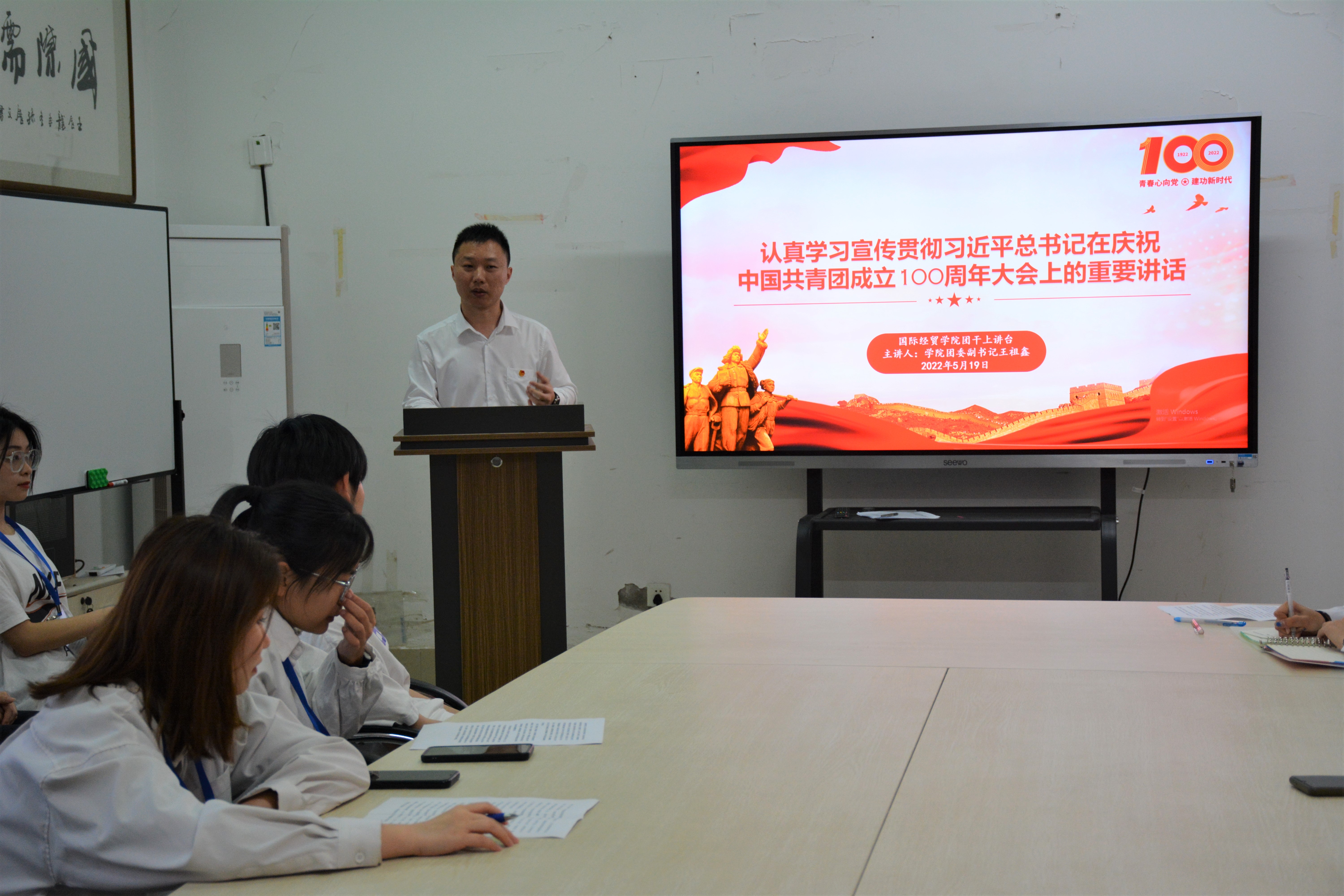 为进一步深入学习宣传贯彻习近平总书记在庆祝中国共产主义青年团成立100周年大会上的重要讲话精神,5月19日,yl7703永利集团团委开展“团干部上讲台”活动,学院团委副书记王祖鑫对习近平总书记在庆祝中国共产主义青年团成立100周年大会上的重要讲话进行领学。