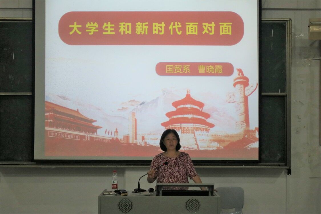 9月20日晚七点,国贸系党总支副书记曹晓霞为三系两委干部主讲《习近平新时代中国特色社会主义思想》干部培训讲座,书记主要以习近平新时代中国特色社会主义思想展开讨论。