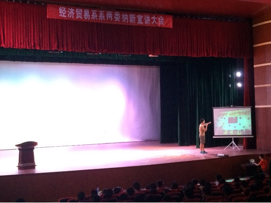 又是一年的新老交替,经贸系团委学生会在我系领导的鼓励支持和正确领导下,积极主动的开展工作,在新学年来临之际,我们迎来了一批满怀期待与梦想的新生。9月10日下午3:30,经贸系两委纳新宣讲在活动中心拉开帷幕。