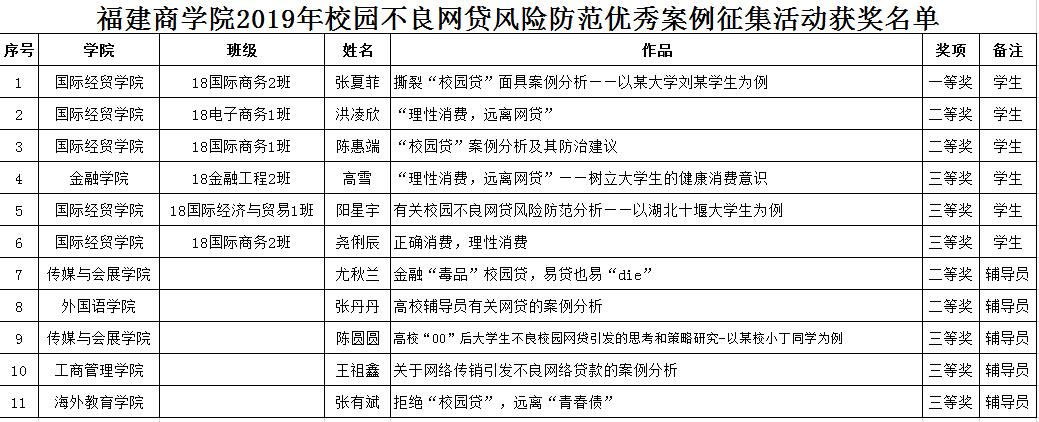 yl7703永利集团2019年校园不良网贷风险防范优秀案例征集活动获奖名单-yl7703永利集团
