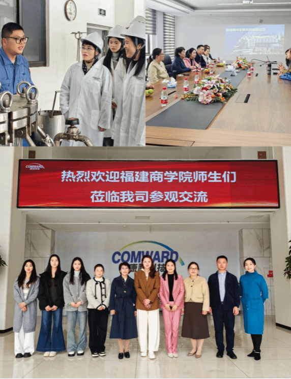 福建康鸿生物科技有限公司人事部主管林丽钦、人资经理王群详细介绍了公司的发展历程、未来规划及人才需求,并带领大家参观了检测中心、生产发酵车间、二期建设工地。通过参观交流,学院师生了解了公司产品生产流程、发展规划、用人需求等。