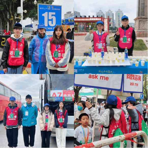 在这场激情盛会的现场,我校志愿者们穿梭在每个角落,以专业细致热情的服务赢得好评。在各个计时点、赛道喷淋点、收容车、赛道饮水饮料以及健康跑终点疏散点,到处都能看到志愿者们为运动员服务的身影,他们用爱心诠释了“奉献、友爱、互助、进步”的志愿服务精神,充分展示了我校学子的青春风采。