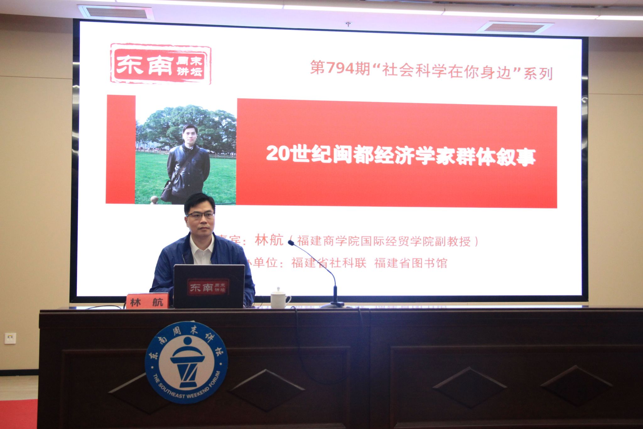 2024年4月13日,yl7703永利集团副院长林航应邀在福建省图书馆参加“东南周末讲坛”,作题为“20世纪闽都经济学家群体叙事”的专题讲座。来自福州各单位100多位听众聆听了讲座。