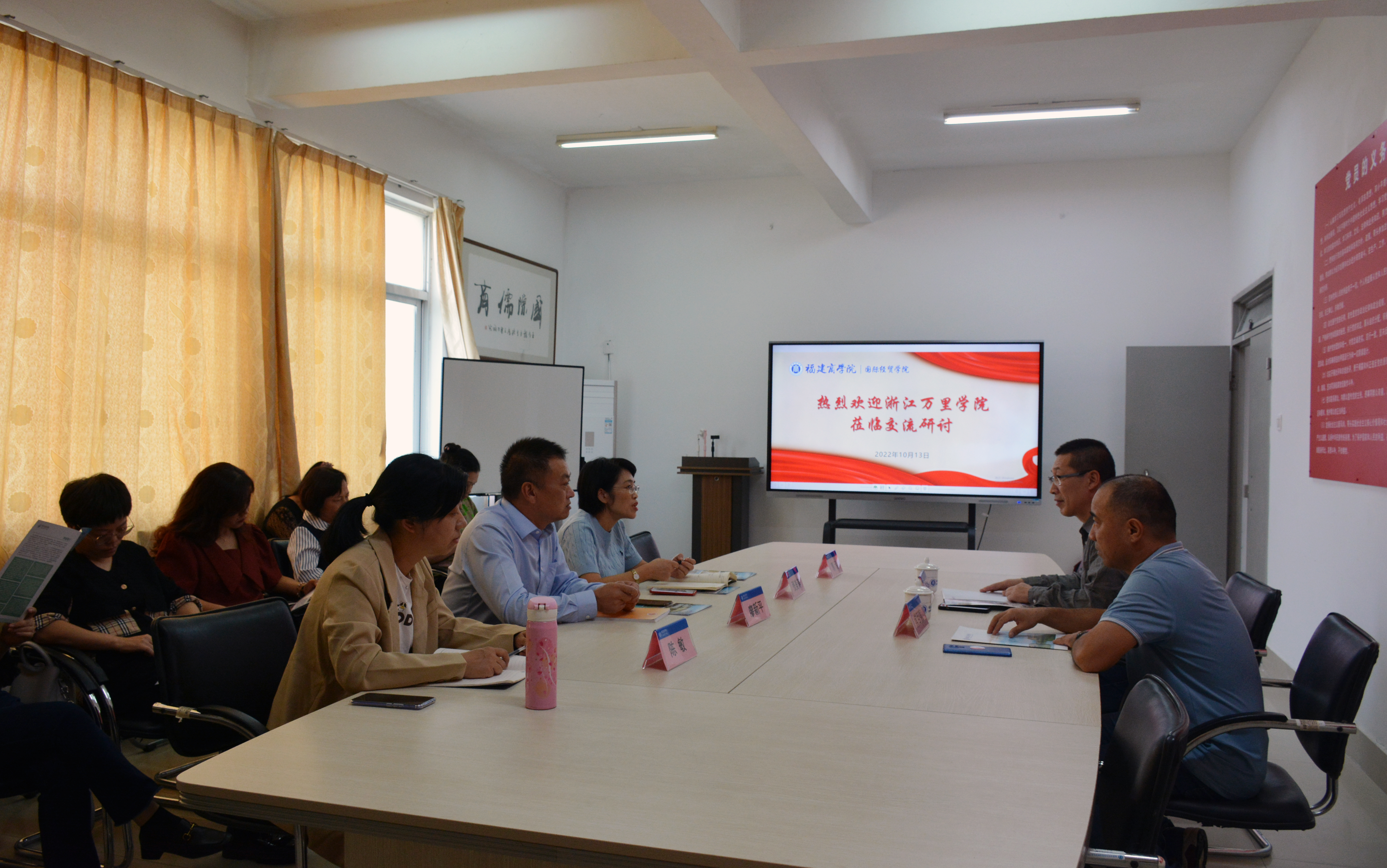 学院院长张美涛、党委书记廖新平、国际经济与贸易系与国际商务系相关专业教师参与座谈交流。交流会由张美涛院长主持,她首先对浙江万里学院商学院老师的到来表示欢迎,介绍了我院的办学情况、师资队伍及专业特色等,并对浙江万里学院商学院近年来在国家一流本科专业建设和硕士点建设等项目上取得的成绩表示由衷的祝贺。随后,双方就学科建设、人才培养以及国家一流本科专业建设经验等方面进行了热烈讨论,期待加强交流合作。