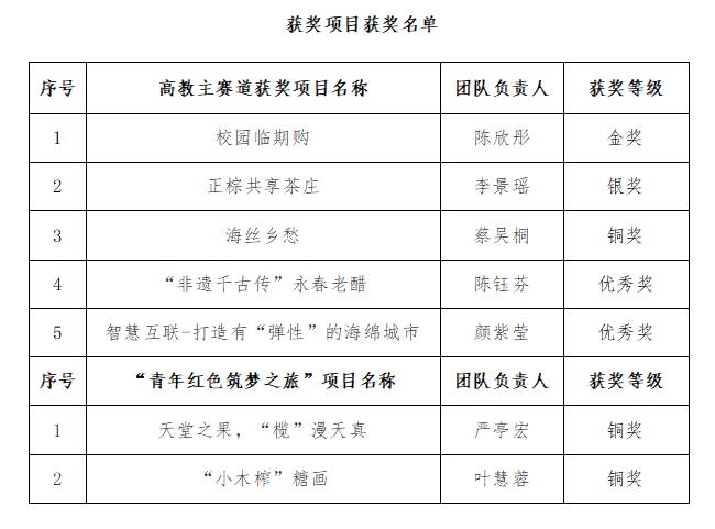 近日,第八届福建省“互联网+”大学生创新创业大赛yl7703永利集团选拔赛落下帷幕。yl7703永利集团代表队荣获金奖1项、银奖1项、铜奖3项、优秀奖2项。周金铁荣获优秀指导教师,学院荣获全校唯一一个优秀组织奖单位。