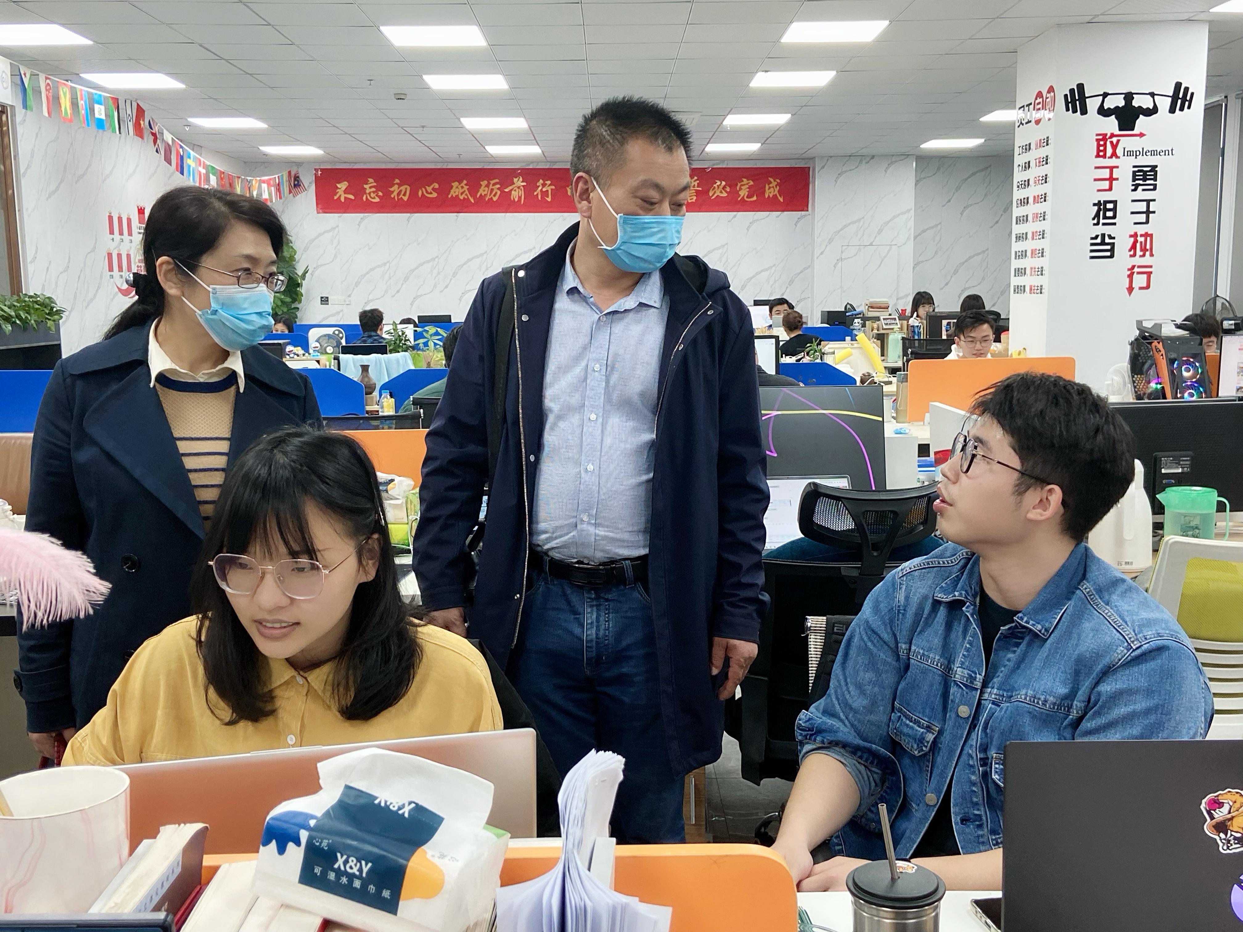廖新平、张美涛与在岗实习毕业生黄尊荣亲切交谈