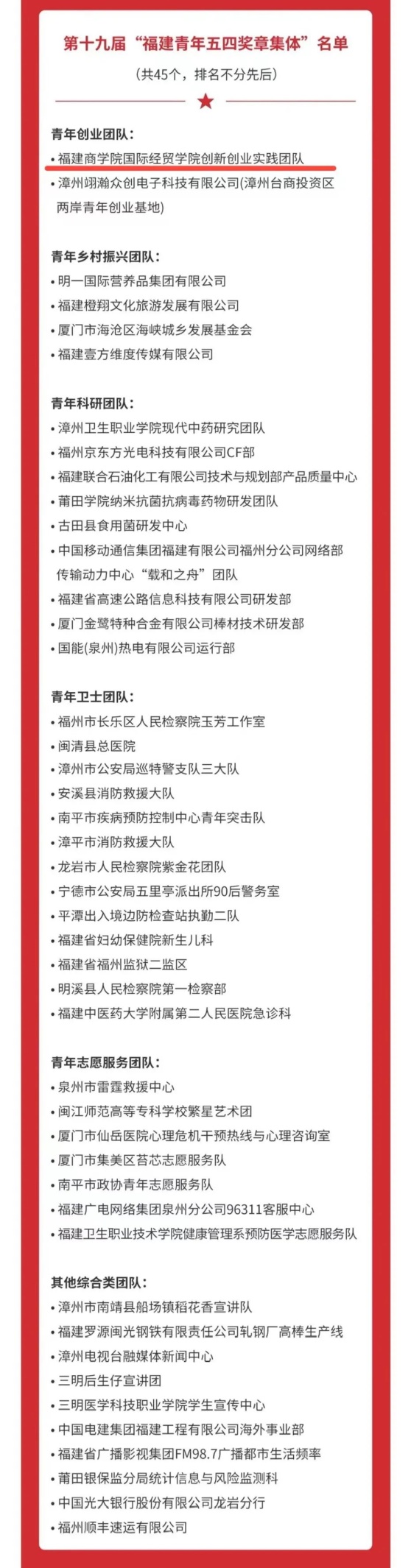 青春心向党,建功新时代!在建团百年之际,第十九届“福建青年五四奖章”和2021年度“福建省五四红旗团委”“福建省五四红旗团(总)支部”“福建省优秀共青团员”“福建省优秀共青团干部”评选结果正式揭晓!