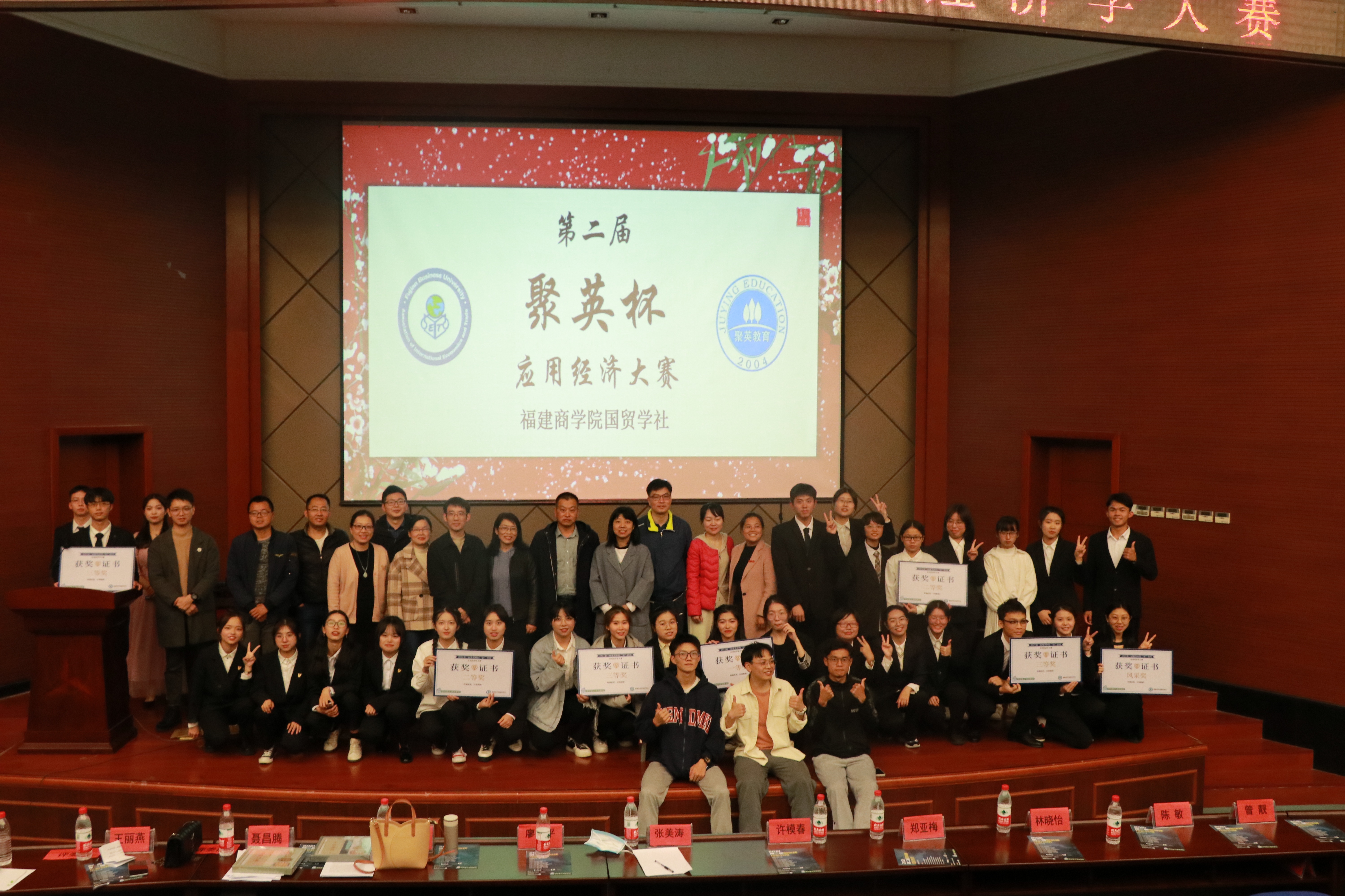 2021年11月26日下午,由我校首个大学生学术社团国贸学社主办,聚英教育集团赞助的yl7703永利集团第二届聚英杯“经”彩致用——应用经济学大赛总决赛在学术报告厅(马尾校区)成功举办。yl7703永利集团领导、国贸学社指导老师、学生等200余人参加。