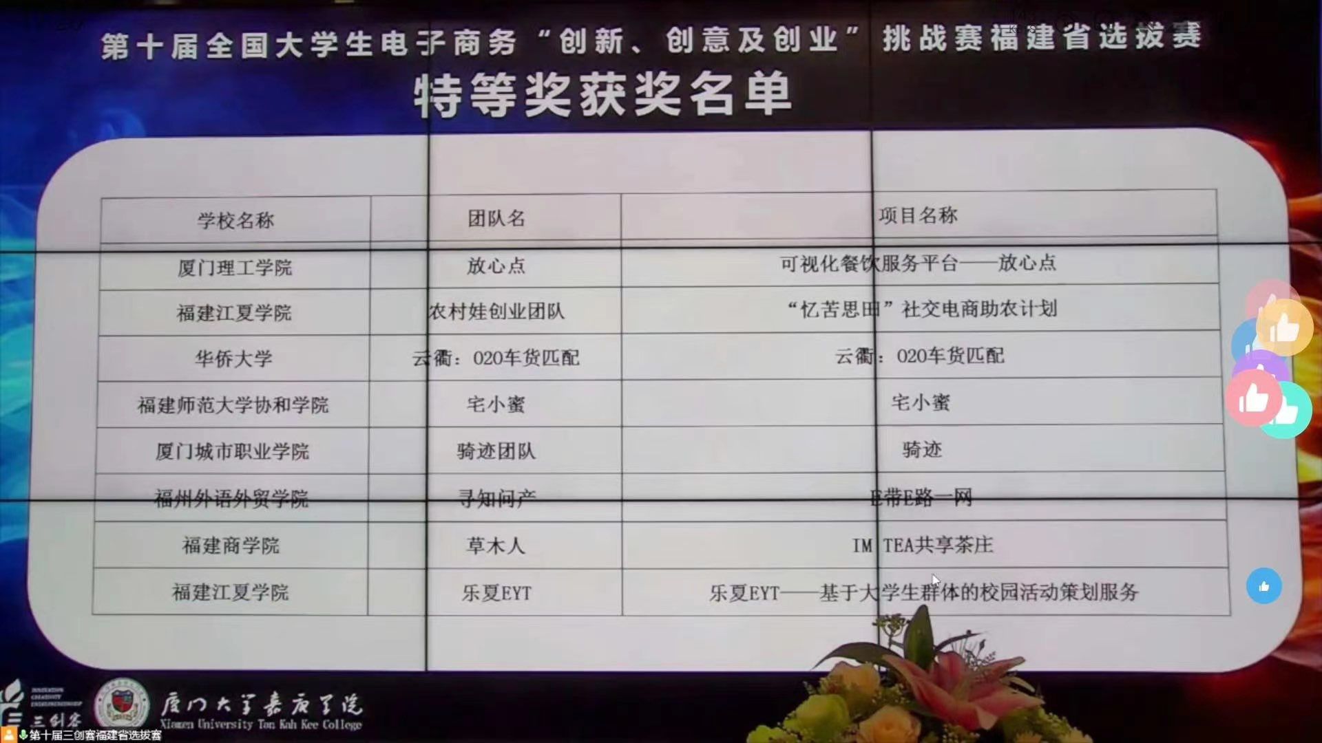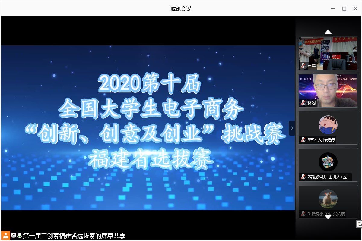 7月25日,由全国电子商务创新产教联盟主办的第十届全国大学生电子商务“创新、创意及创业”挑战赛(简称“三创赛”)福建省选拔赛在线上举行。