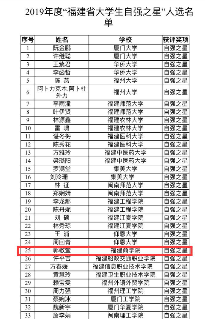 (2019年度“大学生自强之星人选名单公示”网址: www.fjcyl.org/web/news/get?id=202008041026987&columnType=1004&zb=4&tdsourcetag=s_pcqq_aiomsg)