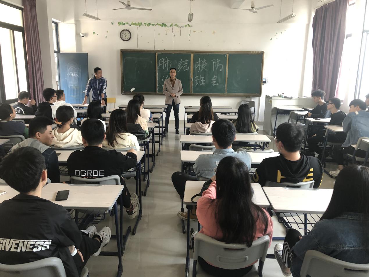 许模春副书记对肺结核病的含义、常见症状、如何防治等内容做了详细的讲解。他指出肺结核是肺部感染结核杆菌后引起的慢性传染病。其常见症状有低烧、夜间盗汗、午后发热、咳嗽咳痰2周以上,痰中带血、胸痛、疲乏无力、体重减轻、呼吸困难等。随后许副书记对肺结核的防控做出了几点部署:一、思想上要重视,严格按照学校及连江疾病预防控制中心的要求做好预防工作;二、做好宿舍卫生,按要求做好通风和体温登记;三、加强锻炼,提高身体抵抗能力;四、在特殊时期应少聚集,如发现疑似病例,及时报告、及时隔离、及时就诊。