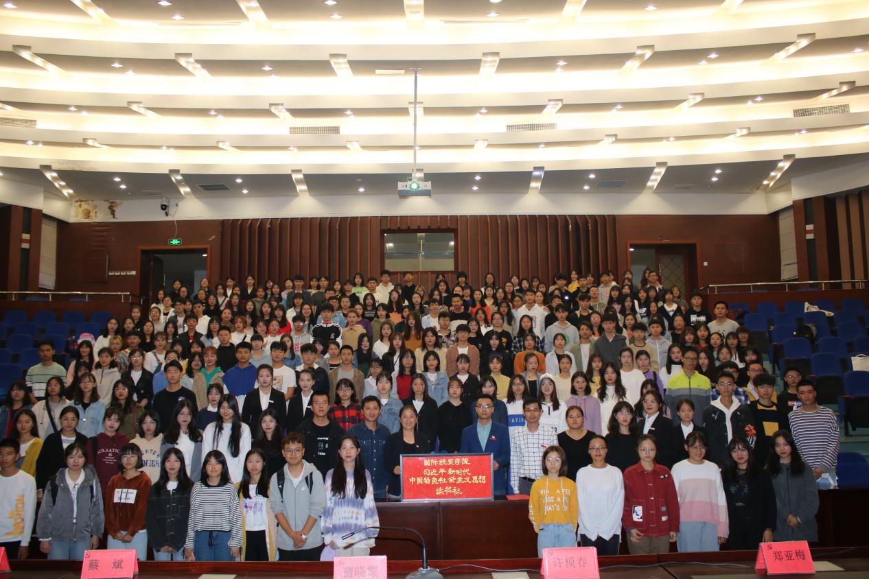 11月5日晚,我院“习近平新时代中国特色社会主义思想”读书社开班暨揭牌仪式在马尾校区学术报告厅举行。我院党委曹晓霞书记、党委许模春副书记为国际经贸学院“习近平新时代中国特色社会主义思想”读书社揭牌。院团委、党支部相关负责人,辅导员,以及读书社全体成员参加活动。