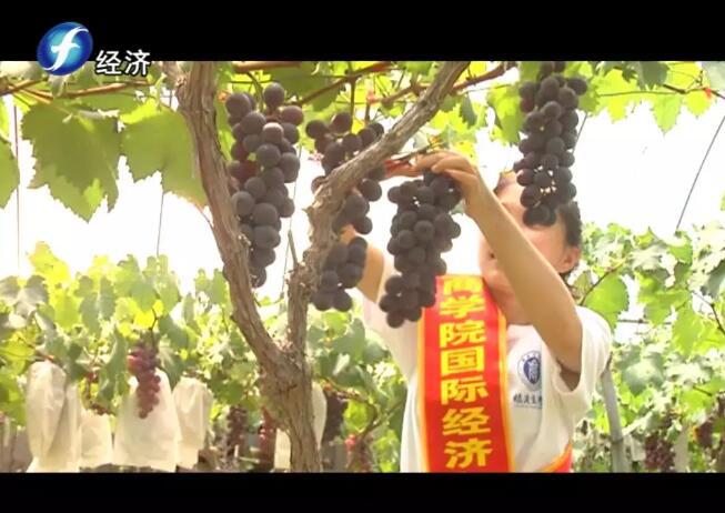 在村第一书记林俞坤以及村两委干部的带领下,学生们对梅村葡萄有了深入的了解,从采摘到包装,再到出售,学生认真实践。