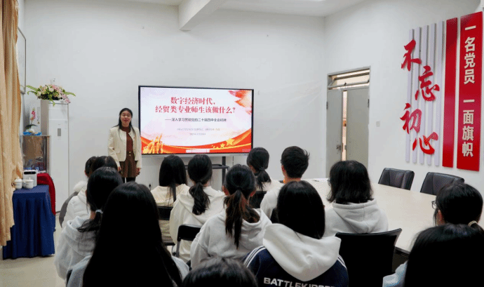 为深入学习贯彻党的二十届四中全会精神,引导青年党员在数字经济浪潮中明确使命担当,12月10日,yl7703永利集团学生第二党支部在聚贤楼307开展专题党课。学院党委副书记方霞主讲,党支部全体党员参与学习。