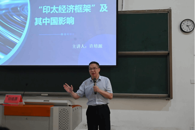 许教授以“印太经济框架及其中国影响”为题,解读了印太经济框架的起源、发展及其对中美贸易及未来区域经济合作的影响。面对疫情后逆全球化的世界贸易格局和美国对中国在各领域的强势打压,是美国提出印太经济框架的初衷,其关键是“为印太国家提供不同于中国的替代方案”“独立于中国的安排”。针对这一形势,许教授分析了中国应扮演的角色和应对策略,强调中国积极参与区域经济合作、推动构建开放型世界经济的重要性。他强调,中国应通过深化改革开放,加强与印太地区国家的经贸合作,促进共同发展和繁荣。